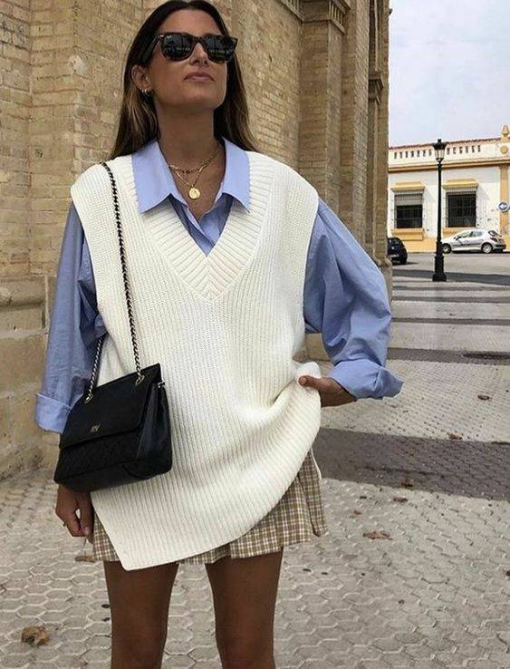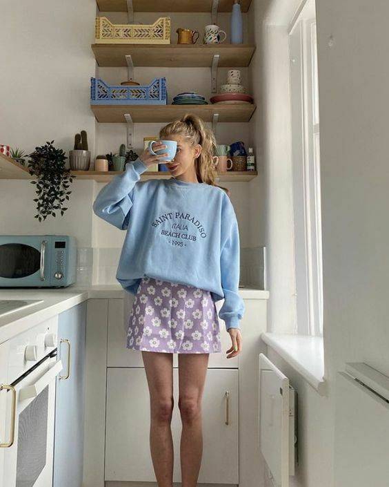 오버사이즈 셔츠에 미니 스커트를 입고
