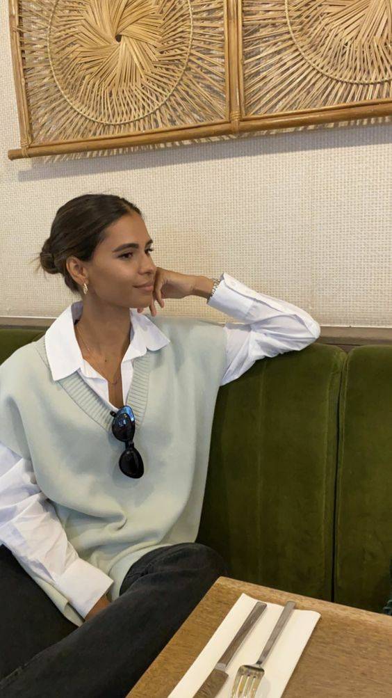 니트나 스웻셔츠를 입고 심플한 팬츠로