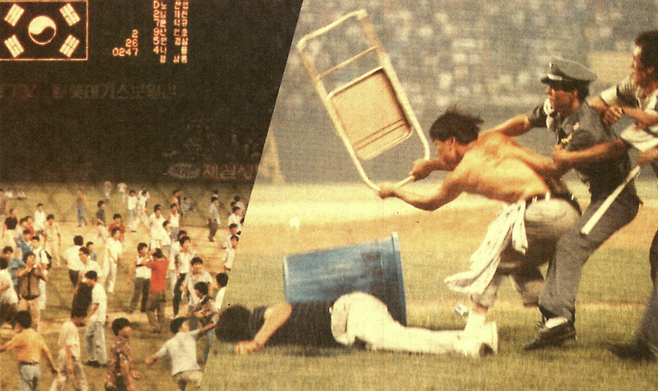 요즘의 성숙한 야구관람 문화에서는 상상할 수 없는 장면이지만, 낭만과 야만이 뒤섞였던 그땐 그랬다. 야구에 인생을 건 아저씨들에게 야구장은 전쟁터였고, 분풀이 해방구였다.
