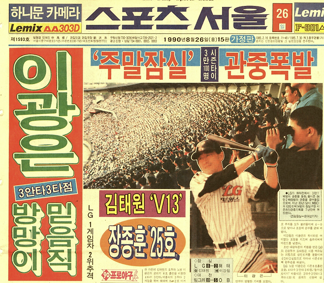 25일 토요일. 3만100명(1990년 잠실야구장 최대 수용인원) 매진사례 속에 이번엔 LG가 8-2 대승을 거뒀다.