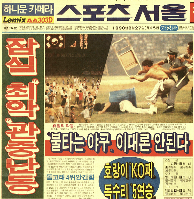 요즘의 성숙한 야구관람 문화에서는 상상할 수 없는 장면이지만, 낭만과 야만이 뒤섞였던 그땐 그랬다. 야구에 인생을 건 아저씨들에게 야구장은 전쟁터였고, 분풀이 해방구였다.