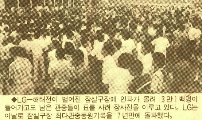 이처럼 잠실 일대가 인파로 터져나간 건 최고 흥행 보증수표인 LG 트윈스와 해태 타이거즈가 만났기 때문이었다.