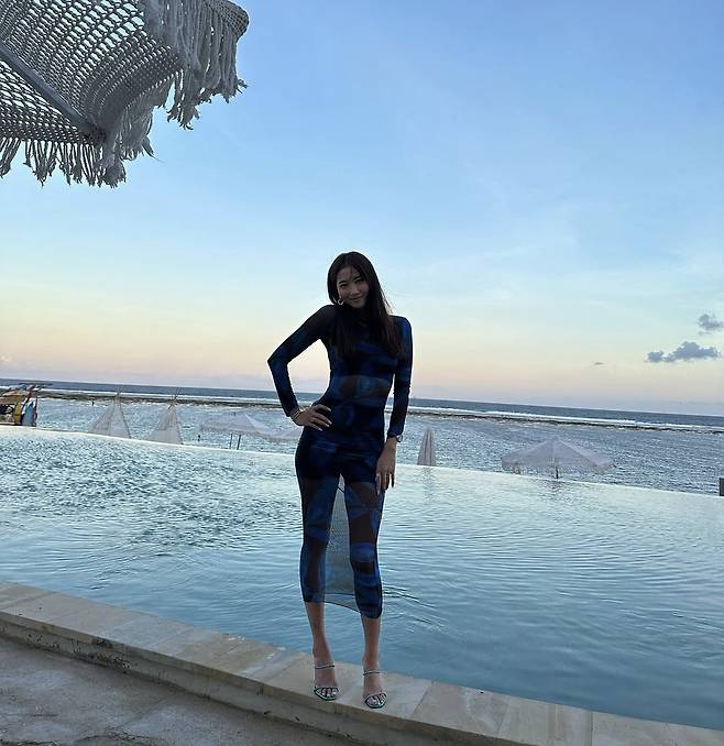 그녀의 황금골반은 레이싱걸로 활동할 때부터 유명했는데요. 짧은 크롭탑에 미니스커트를 입은 모습인데 잘록하게 들어간 허리와 S라인 골반이 너무 아름답지 않나요? 그야말로 여성분들의 워너비 몸매인 듯...!