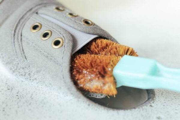 칫솔로 신발을 꼼꼼히 문질러 닦아줍니다.