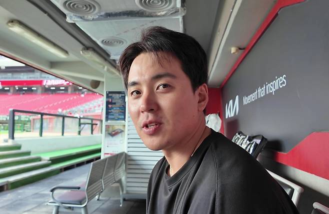 이해창 코치는 “메커니즘을 건들기보다는 신체적인 부분에서 둔해지지 않게 그런 부분에서 이야기를 많이 하고 신경 썼다. 생각이 괜찮은 친구라서 서로 존중하면서 필요한 훈련을 하면서 준비했다”며 “되게 진중하게 방향성을 잘 잡고 했다. 그냥 맹목적으로 할 수 있는데, 어떤 목표점이 있고 방향성을 잘 잡고 노력을 했다”고 말했다.