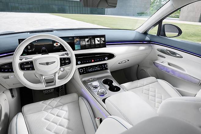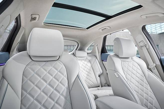 실내는 클러스터와 ccIC 인포테인먼트 시스템을 하나로 합친 27인치 통합형 와이드 디스플레이와 터치 타입 공조 조작계를 탑재해 세련된 느낌을 강조했다. 또한 ▲도어트림 상단부에서 센터페시아로 이어지는 무드 램프 ▲은하수를 형상화한 도어 가니쉬와 무드 램프를 조합한 전기차 전용 ‘밀키웨이 패턴 무드라이팅’ 등으로 실내 고급감을 향상시켰다.