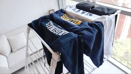 다만, 스탠드형 건조대에 비해 살대의 길이가 짧아, 오버핏이나 큰 사이즈의 옷을 걸 경우 옷이 구겨질 수도 있습니다.