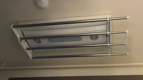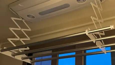 아파트 베란다 옵션으로 있는 경우가 많은 천장형 빨래건조대이며, 옵션이 없더라도 구매하여 설치하는 분들이 많은 빨래건조대 형태입니다.