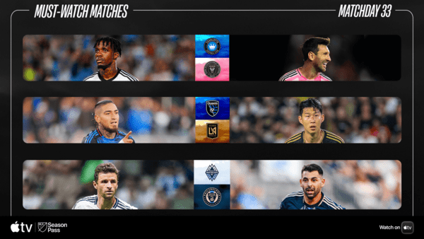 MLS 사무국은 A매치 휴식기 이후 열릴 경기를 앞두고 "9월 A매치 휴식기가 끝나면서 33라운드 토요일 일정은 그 어느 때보다 치열할 것"이라며 샬럿FC vs 인터 마이애미CF, 밴쿠버 화이트캡스 vs 필라델피아 유니언, 산호세 어스퀘이크스 vs LAFC의 세 경기를 조명했다.