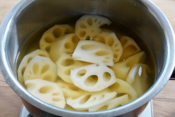 1. 연근은 식초물에 살짝 데쳐야 갈변을 막고 식감도 좋아집니다.
