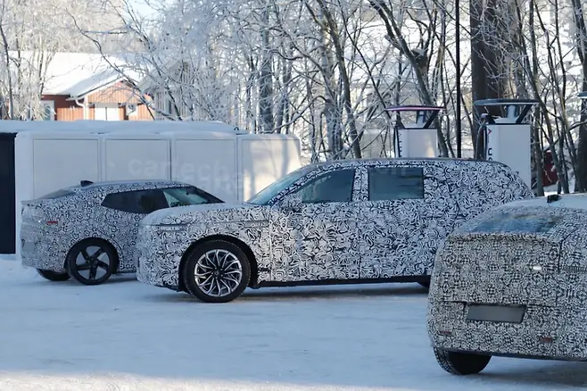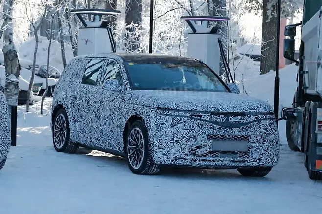 북유럽의 혹독한 눈길에서 포착된 GV90 프로토타입은 발광 크레스트 그릴, 펜더 깊숙이 연장된 동적 방향지시등, 대형 OLED 디스플레이를 선명히 드러냈다. 현대모비스 테스트 시설 인근에서 진행된 이 테스트는 배터리 열 관리, AWD 시스템 캘리브레이션, 에어 서스펜션 내구성을 중점 검증했으며, 프로토타입이 눈더미에 빠지는 장면도 포착됐다. 미쉐린 X-Ice Snowy SUV 타이어(285/45 R22)를 장착해 극한 조건에서의 그립과 안정성을 확인했으며, 이는 럭셔리 SUV의 겨울철 주행성을 강화하는 선택이다.