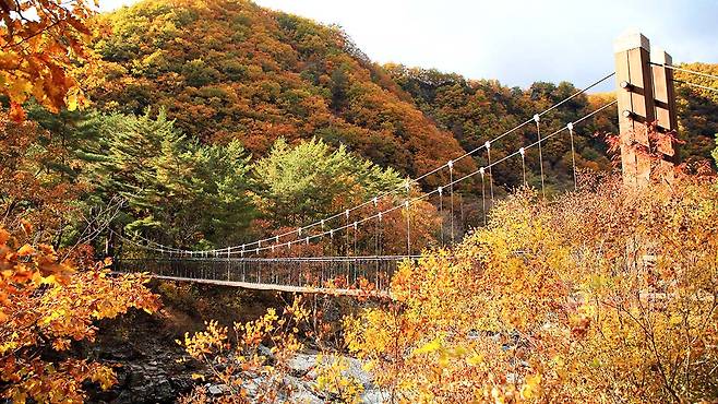 주차장에서 출발해 생태 탐방로를 따라 걷다 보면, 출렁다리와 함께 깊고 청명한 계곡 풍경이 차례로 펼쳐진다.