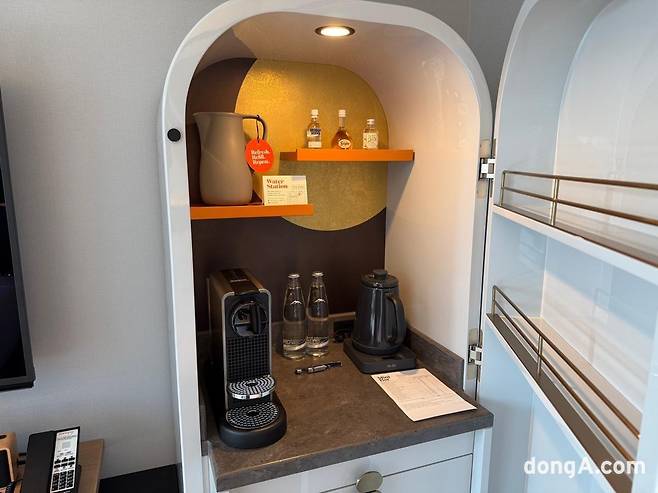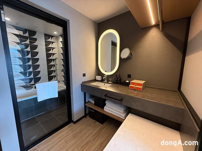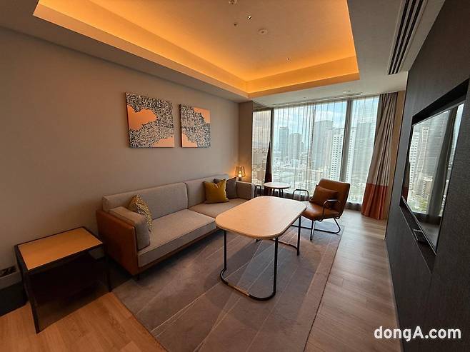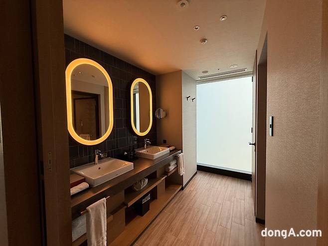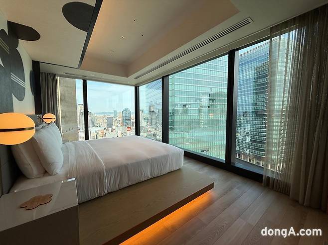 객실은 55인치 대형 TV, 고속 유·무선 인터넷, 블루투스 스피커, 전자안전금고, 미니바, 커피 머신, 다기능 어댑터 등이 기본으로 제공된다. 샤워 부스, 세면대, 화장실이 분리된 구조는 실용적이다. 푹신한 침대와 침구류는 숙면을 도왔다. 개장한 지 6개월도 되지 않아 모든 시설이 깨끗하고 전반적인 상태가 준수했다.