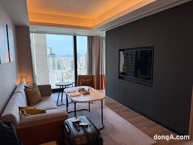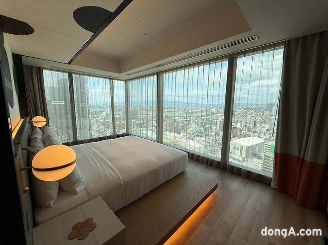 객실 구조는 고층 건물의 장점을 최대로 살린 ‘전망’이 가장 돋보였다. 통유리창 구조 덕분에 오사카 우메다 지역 곳곳을 객실에서 내려다볼 수 있었다. 호텔을 중심으로 다양한 형태로 지어진 고층 건물들과 공원 등을 살펴보는 재미가 쏠쏠했다.