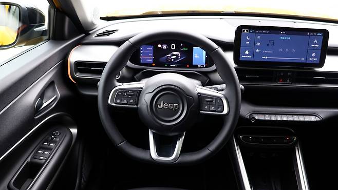 실내 공간이다. 엔트리급 SUV인 만큼 화려한 공간감을 보여주진 못하지만, 탁월한 공간 활용성에서 지프의 브랜드 센스를 느껴볼 수 있다. 수평적인 형태의 대시보드에는 계단식으로 수납함을 마련해 두었다. 센터 콘솔은 중심부 주행모드와 EPB 버튼을 제외하면 전부가 수납공간, 중앙 컵홀더의 경우 크기를 조정할 수 있다. 한편 공조장치, 시트 열선 같은 조작 버튼들은 센터패시아에 깔끔하게 나열된 형태를 갖춘다. 변속기는 그 아래에 버튼식으로 배치했고, 멀티펑션 스티어링 휠을 통해 미디어 등 인포테인먼트 조작도 가능하다.
