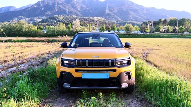 시승 차량은 지프 어벤저 EV Altitude 등급이다. 국내 시판 차량 기준으로는 상위 트림에 해당된다. 전면 디자인에서의 차이는 프로젝션 타입 LED 헤드램프가 적용된다는 점, 헤드램프 자체는 DRL과 메인 모듈이 분리된 형태를 갖춘다. DRL을 높게 배치해서 차량 전고를 강조하는 부분은 지프의 공통된 패밀리룩 중 하나라 볼 수 있다. 7대륙을 상징하는 7슬롯 그릴도 언급하지 않을 수 없다. 전기차인만큼 그릴 표면은 막혀있지만, 그만큼 더욱 지프의 아이덴티티를 나타내는 가장 확실한 요소 중 하나가 된다. 넓은 면적의 언더커버 또한 전통적인 SUV의 감성을 연출해 준다.