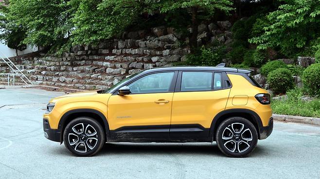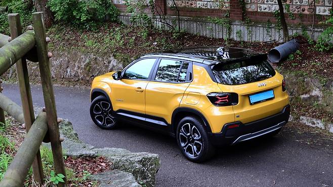 어벤저 EV의 체구는 예상보다 더욱 아담한 크기였다. 차체 전장에 비해 휠베이스가 길고 전고가 높다 보니, 단순 비율상으로는 더욱 커 보이는 인상이 있다. 측면 디자인에서는 앞뒤 휠 하우스를 강조하는 볼륨 라인이 특징, 사선 형태의 벨트라인과 역동적인 C필러 디자인이 세련된 분위기를 더해주었다. 시승 차량 Altitude 등급의 경우 18인치 알루미늄 폴리쉬드 휠이 적용되어 있다. 그 밖에도 파노라마 선루프와 블랙 컬러 루프, 블랙 컬러 아웃사이드미러가 적용된다. 대신에 루프랙은 생략된 모습이다.