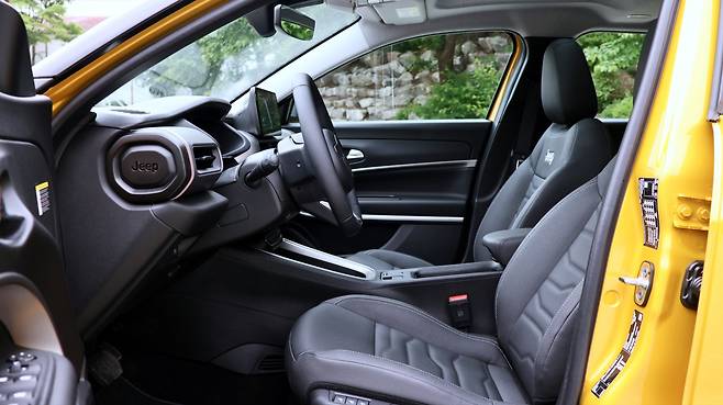 실내 공간이다. 엔트리급 SUV인 만큼 화려한 공간감을 보여주진 못하지만, 탁월한 공간 활용성에서 지프의 브랜드 센스를 느껴볼 수 있다. 수평적인 형태의 대시보드에는 계단식으로 수납함을 마련해 두었다. 센터 콘솔은 중심부 주행모드와 EPB 버튼을 제외하면 전부가 수납공간, 중앙 컵홀더의 경우 크기를 조정할 수 있다. 한편 공조장치, 시트 열선 같은 조작 버튼들은 센터패시아에 깔끔하게 나열된 형태를 갖춘다. 변속기는 그 아래에 버튼식으로 배치했고, 멀티펑션 스티어링 휠을 통해 미디어 등 인포테인먼트 조작도 가능하다.