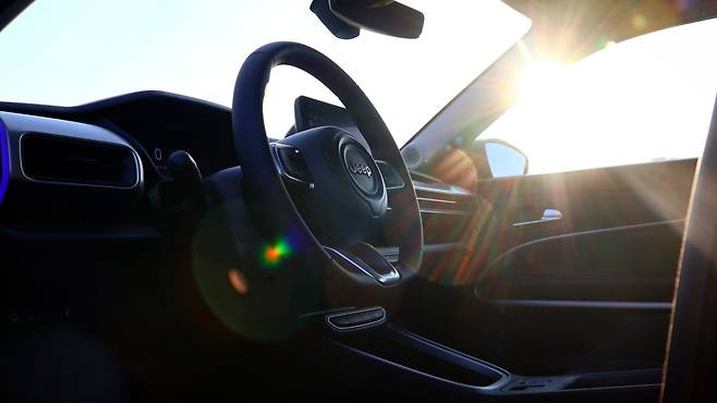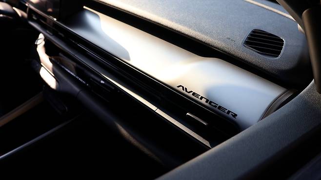 아담한 실내 공간에 담긴 지프 브랜드 고유의 감성은 예상보다 이질감 없이 잘 어울렸다. 또, 전기차라는 특징으로 인한 이질감도 느껴지지 않았다. 어벤저의 E-CMP2 플랫폼의 정확한 구조는 찾아보기 어려운데, 해당 플랫폼을 활용한 푸조의 소형 EV의 경우 시트 아래에 배터리를 밀집시켜 레그룸 공간을 유지하는 구조를 보인바 있다. 어벤저 EV도 마찬가지, 시트 포지션이 자연스럽고 편안하다. 전원은 일반적인 푸시 타입 버튼, 변속기를 D 단에 두면 차량을 부드럽게 크리핑 한다. 아쉽게도 회생제동 'B'단에서 완전 정차는 불가능했다.