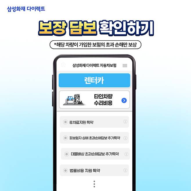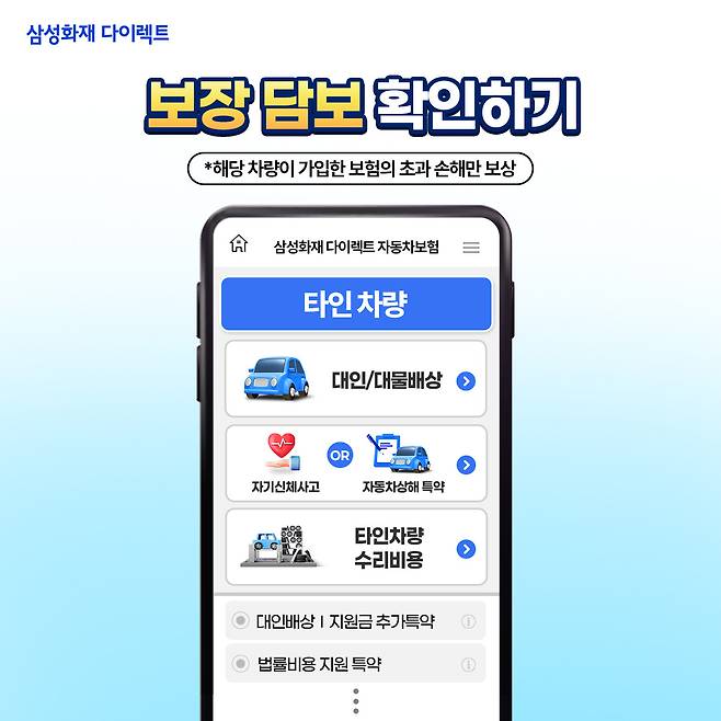 삼성화재 다이렉트에서는 해당 차량이 가입한 보험의 초과 손해만큼의