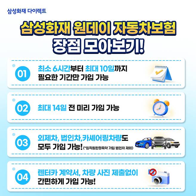 삼성화재 다이렉트 원데이 자동차보험에서 준비해보세요.