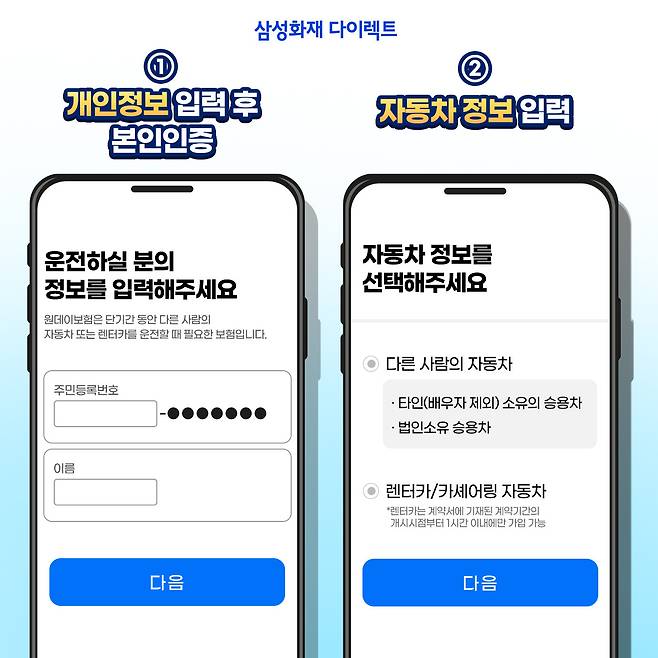 삼성화재 다이렉트 원데이 자동차보험은 보험 가입 과정에서
