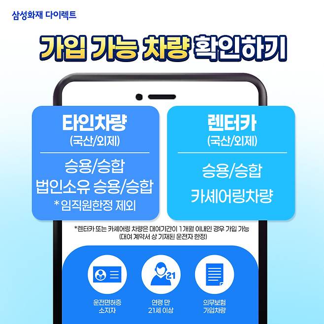 운전면허증 소지자라면 만 21세 이상부터 가입 가능하며,
