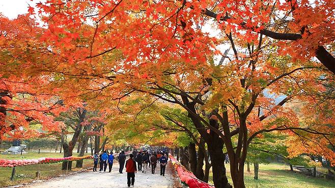 높게 솟은 전나무 사이로 햇살이 스며들고, 바닥에는 붉은 단풍이 양탄자처럼 깔립니다. 이 길은 ‘한국의 아름다운 길 100선’에도 선정된 만큼, 그 자체로 여행의 목적이 되기에 충분합니다.