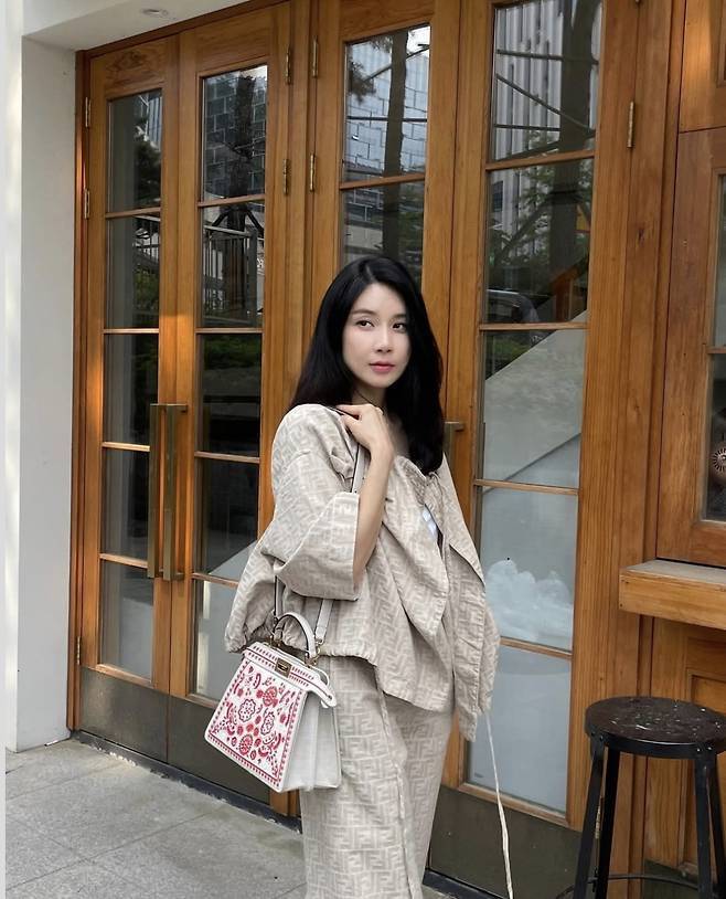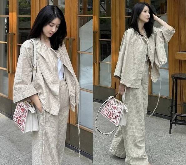 이보영은 은은한 베이지 톤의 Fendi 자카드 셋업을 입고 편안하면서도 절제된 고급스러움을 연출했습니다.