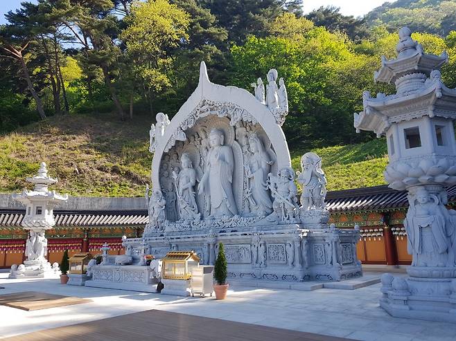 1m 남짓한 크기임에도 신라 후기 불상 양식의 정수를 보여주는 이 불상은, 오랜 세월을 이겨낸 단아한 미소로 방문객의 마음을 다독입니다. 높이 8m에 달하는 대형 괘불탱화(보물 제1379호)와 경상북도 문화유산자료인 석등 등 사찰 곳곳에 흩어진 문화재들은 이곳이 한국 전통문화의 거대한 보고임을 실감하게 합니다.