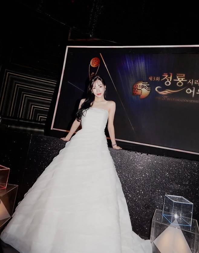 오프숄더 스타일로 야리야리한 분위기를 연출했으며, 전체적인 실루엣이 우아하면서도 현대적인 감각을 살렸습니다.