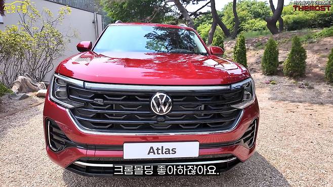 웅장하고 거대한 차체는 한국 소비자들이 선호하는 요소를 잘 갖추고 있습니다. 또한, 한국 사람들이 크롬 몰딩을 선호하는 경향도 아틀라스의 디자인에 반영된 듯합니다. 요즘 젊은 층에서는 '크롬 죽이기'라는 말을 많이 사용하지만, 저희 같은 연령대에서는 크롬이 반짝여야 존재감이 느껴지고 고급스러워 보인다고 생각합니다.