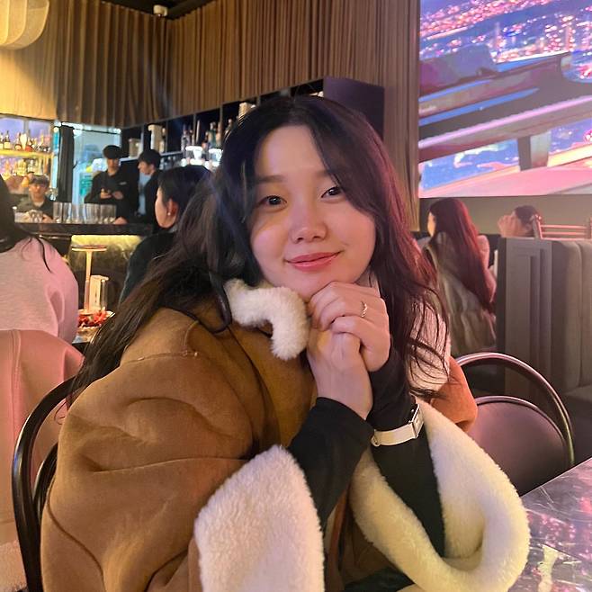 세 번째 사진에서 김수민은 브라운 퍼 코트를 활용해 포근하고 럭셔리한 겨울 패션을 선보였다. 퍼 트리밍이 돋보이는 코트는 따뜻하면서도 고급스러운 느낌을 자아내며, 블랙 이너웨어와 함께 차분한 색감의 조화를 이루고 있다. 실내 공간에서도 존재감을 드러내는 스타일링이다.