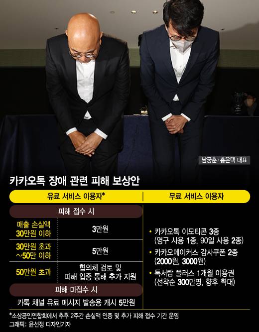 협의체에 참여한 김기홍 소상공인연합회 감사는 "협의체의 논의는 카카오를 영업 플랫폼으로 선택해 사용해온 소상공인들의 실질적 피해 지원에 초점이 맞춰져 있다"며 "법의 논리를 들이대며 피해보상 여부를 다투지 않고, 소상공인 피해에 공감하며 경제적 약자를 위한 사회적 책임을 외면하지 않았기에 오늘의 합의에 이를 수 있었다"고 말했다.