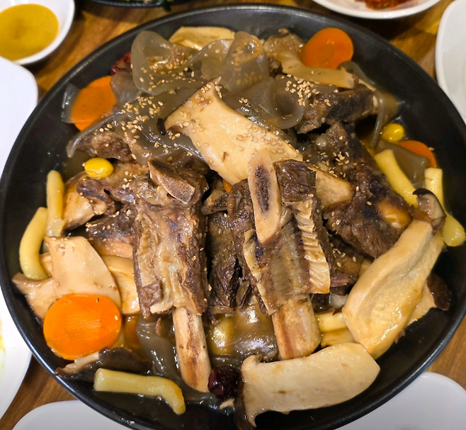 접시에 담겨 나오는 갈비찜을 보면 정말 산처럼 쌓여 나오는 느낌이라 처음 방문한 사람들은 대부분 양에 놀라게 됩니다.하지만 양만 많은 것이 아니라 갈비 맛 자체도 좋아 한 번 방문하면 두 번 세 번 다시 가고 싶다는 후기가 많습니다.