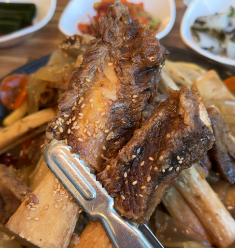 갈비는 부드럽게 익혀 나와 뼈에서 살이 쉽게 떨어지는 식감입니다. 잡내가 거의 없고 고기가 야들야들해 계속 손이 가는 맛입니다.