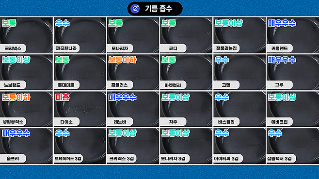 이 중 흡수력이 가장 뛰어난 키친 타월은 무엇이었을까요?