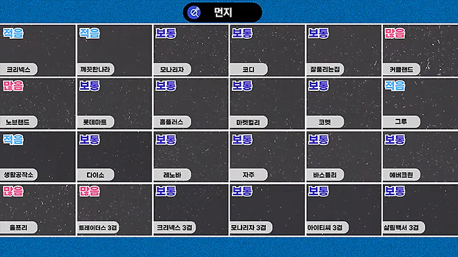 크기, 두께, 흡수력, 먼지 등을 해 보았습니다.