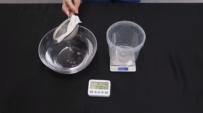 두 제품의 흡수력을 비교하기 위해, 먼저 마른 상태의 키친타월 3장을 무게를 측정한 다음, 이를 물에 담가 물기를 제거하고 다시 무게를 잰 후, 흡수한 물의 양을 비교해 보았습니다.