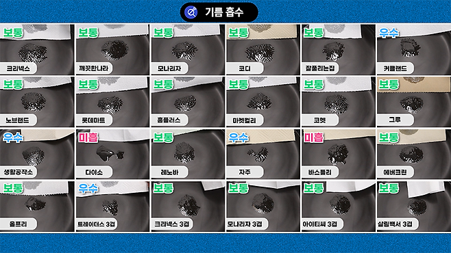 반대로 흡수력이 가장 아쉬운 제품은 무엇이었을까요?