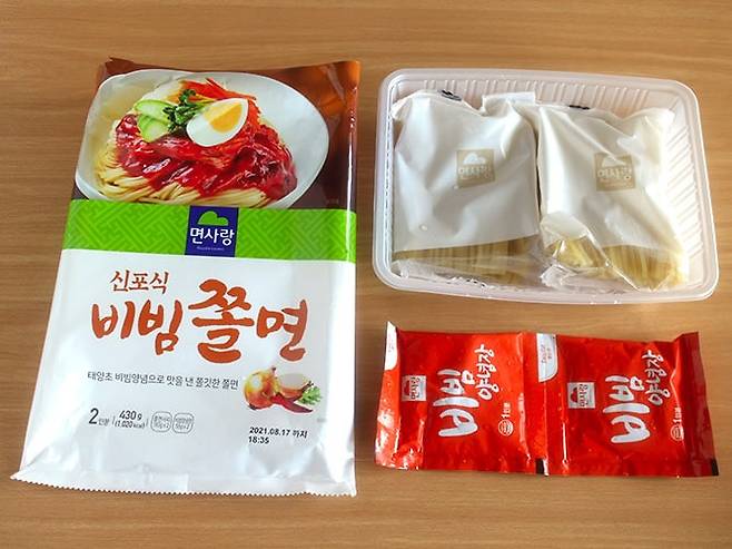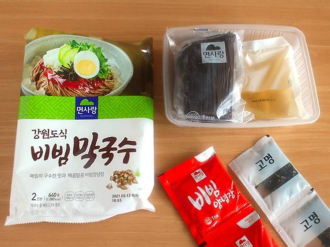 포장 안에는 면과 비빔양념장이 깔끔하게 들어있고, 실온 보관도 가능하다는 점이 참 편하더라고요.
