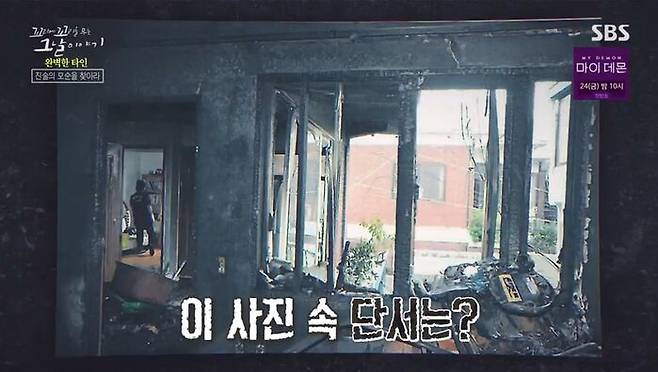 이번엔 어머니 사망에 대한 진술을 검토해볼 차례야. 이 사건은 현장이 이미 불타 없어진지 오래라 더 막막해. 다행히 사진이 몇 장 남아 있어서 보고 또 보는데, 한 사진 앞에서 형사들의 눈빛이 달라져. 바로 이 사진.