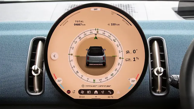 미니의 시그니처인 원형 '다이얼'은 사실상 차량의 인터랙티브 스크린으로, 모든 정보와 기능이 집약되어 있다. 헤드업 디스플레이도 제공되지만, 미니의 원래 디자인에 충실하게 한 곳에서 모든 정보와 기능을 관리할 수 있도록 설계되었다. 다양한 물리적 버튼과 스티어링 휠 컨트롤이 있음에도 불구하고, 모든 기능이 디스플레이에 집중되어 있어 일부 기능을 찾는 데 시간이 걸릴 수 있다는 단점이 있다.