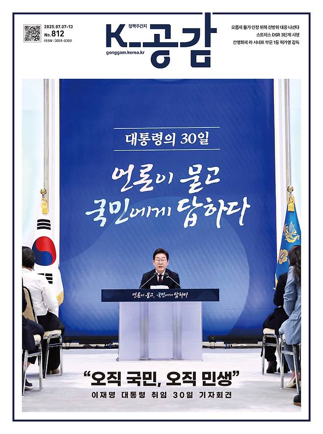 이재명 대통령은 취임 한 달을 맞은 7월 3일, 역대 어느 정부보다 빠르게 취임 30일 기자회견 ‘언론이 묻고 국민에게 답하다’를 개최하고 각종 국가적 현안에 대해 답했습니다. 청와대 영빈관에서 열린 이번 기자회견은 단상 없이 둘러앉아 질의를 주고받는 타운홀미팅 방식으로 열렸습니다. 추첨을 통해 질문할 기자를 정하는 등 미리 결정된 순서 없이 내외신 기자들이 폭넓은 의제에 대해 질문하면 이 대통령이 답하는 식이었습니다. 기자회견에는 지역 언론 기자들이 미디어월로 참석해 질문할 기회를 얻기도 했습니다. 모두 15개 질문이 나온 기자회견은 예정된 시간을 훌쩍 넘겨 두 시간 동안 진행됐습니다. 자세한 내용은 정책주간지 'K-공감'을 확인하세요.