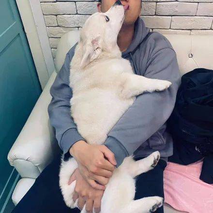 한껏 사랑스러운 포즈로 아빠 품에 밀착해 있던 반려견 코기는 엄마가 다가오자마자 더욱 교묘하게 자신의 영역을 표시했습니다.