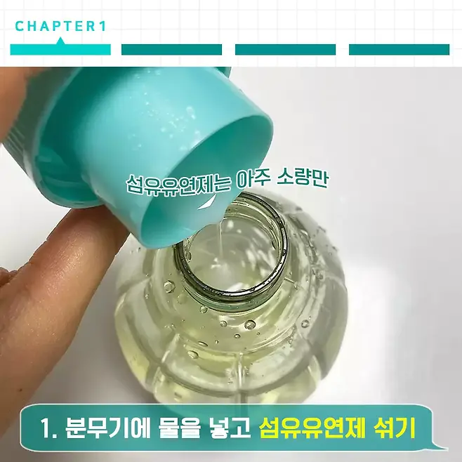 2. 분무기에 물과 섬유유연제를 섞섞~