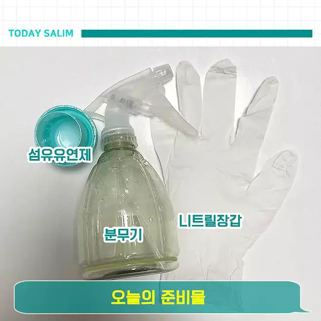 1. 섬유유연제, 분무기, 니트릴 장갑 준비해주세요.