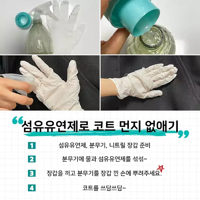 준비물 : 섬유유연제, 분무기, 니트릴 장갑, 코트
