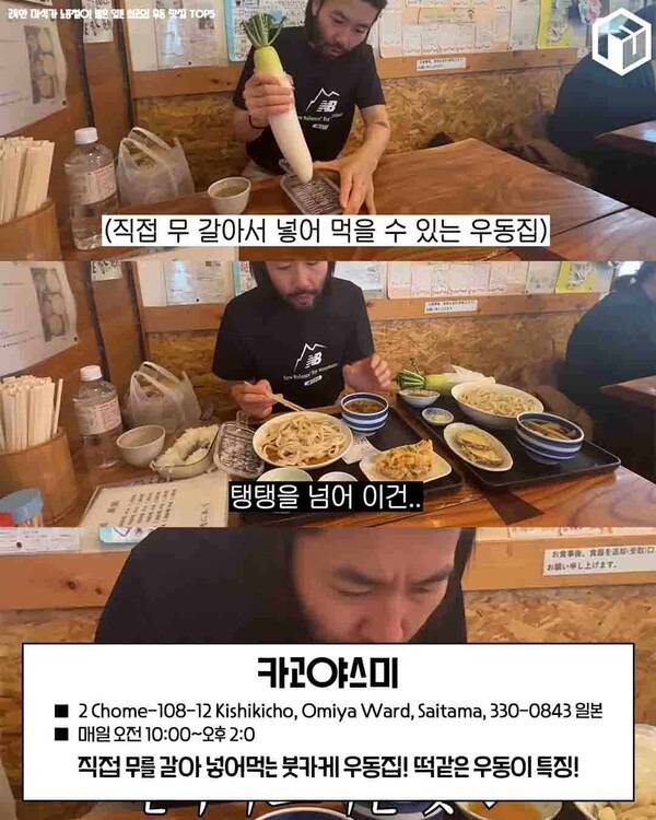 오늘은 노홍철이 실제로 찾았던 일본의 우동 명소 중 베스트 6곳을 엄선해 소개해드립니다. 오늘 알려드릴 일본 우동 맛집 6곳은 찐 리액션을 자아낸 노홍철의 현지인 일본 우동 맛집들인데요. 여행객들이 부담 없이 들를 수 있는 분위기 또한 큰 장점인 일본 맛집입니다.