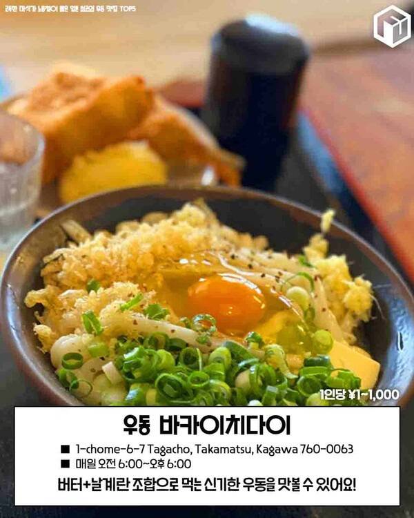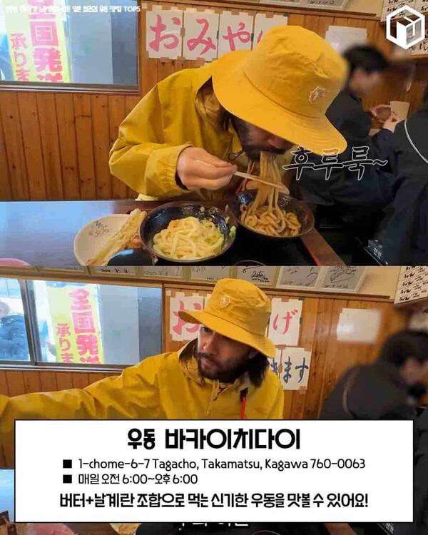 일본 다카마쓰를 여행 중이라면 꼭 방문해야 하며, 거기다 우동 애호가라면 '우동 바카이치다이' 에 방문하는 것을 추천드리는데요. 노홍철도 방문한 이곳은 특히 '가마버터 우동'이 유명한 일본 맛집입니다.
